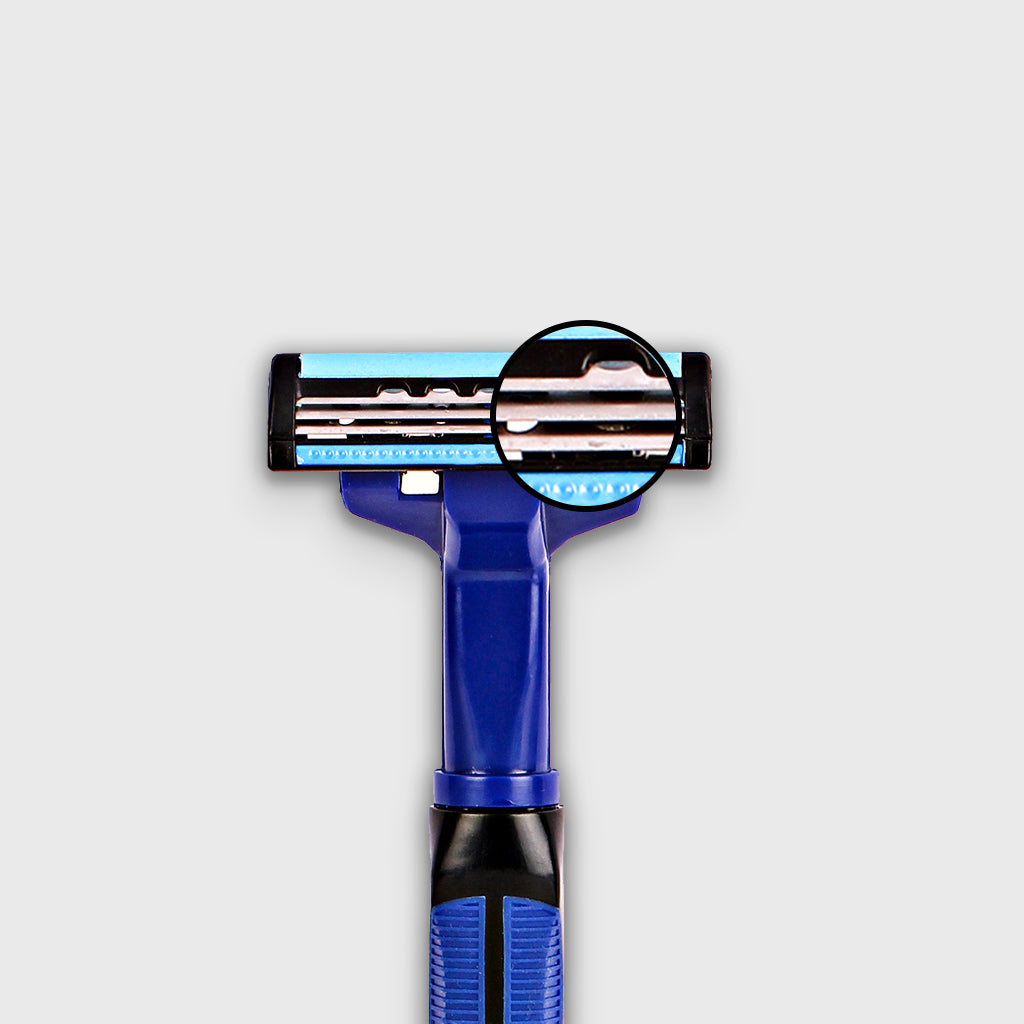 Enriched with aloe, the blade’s lubricating strip helps enhance glide, while you shave