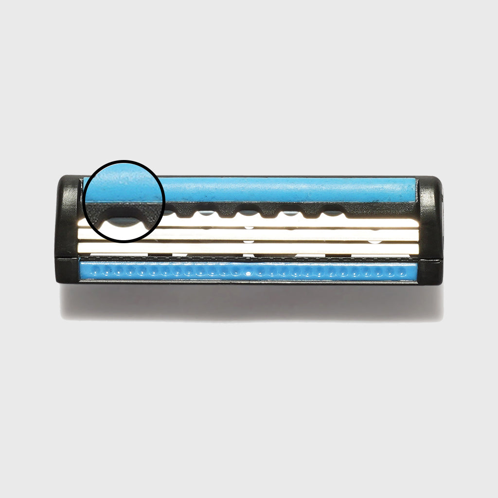 The superior flow-through of the cartridge prevents clogging making it easy to rinse and keeps the blades clean, resulting in a longer durability.