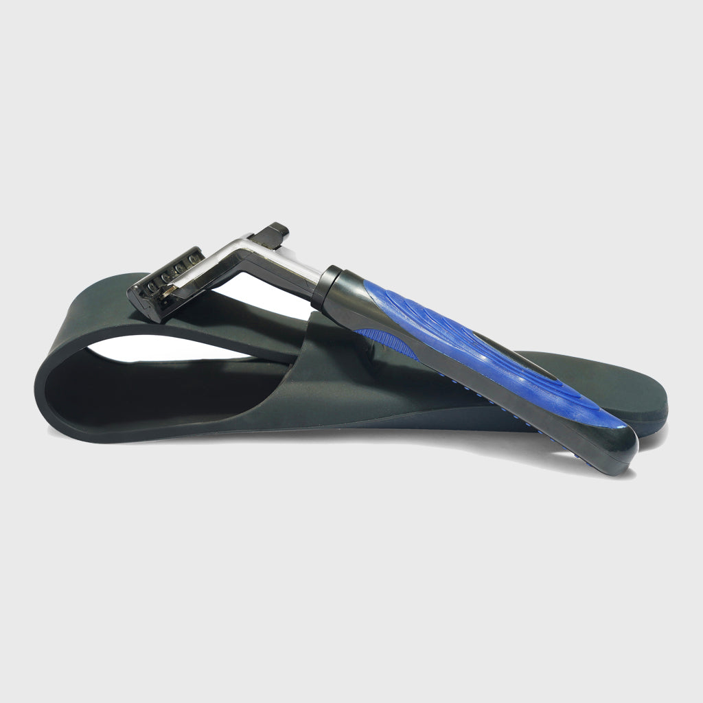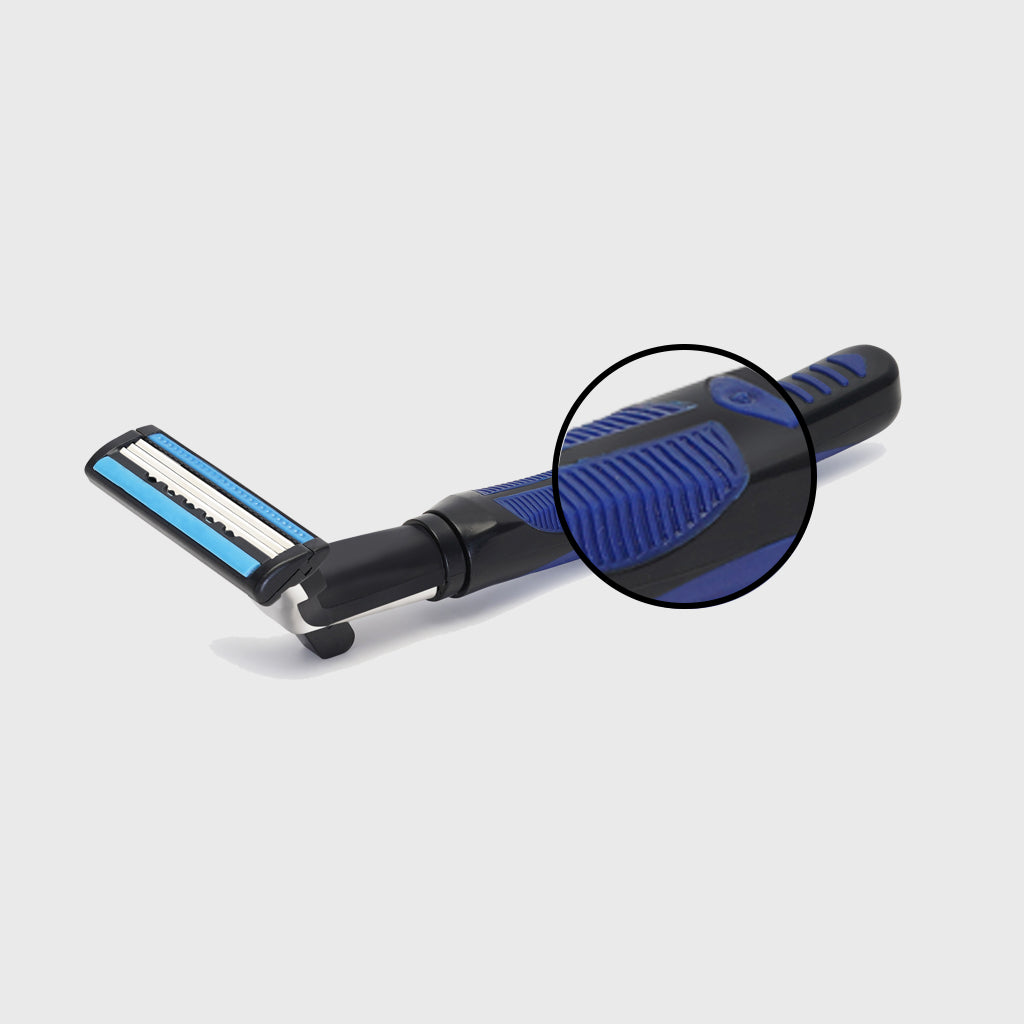 Ergonomically designed rubberized grip handle for maximum grip and control while you shave