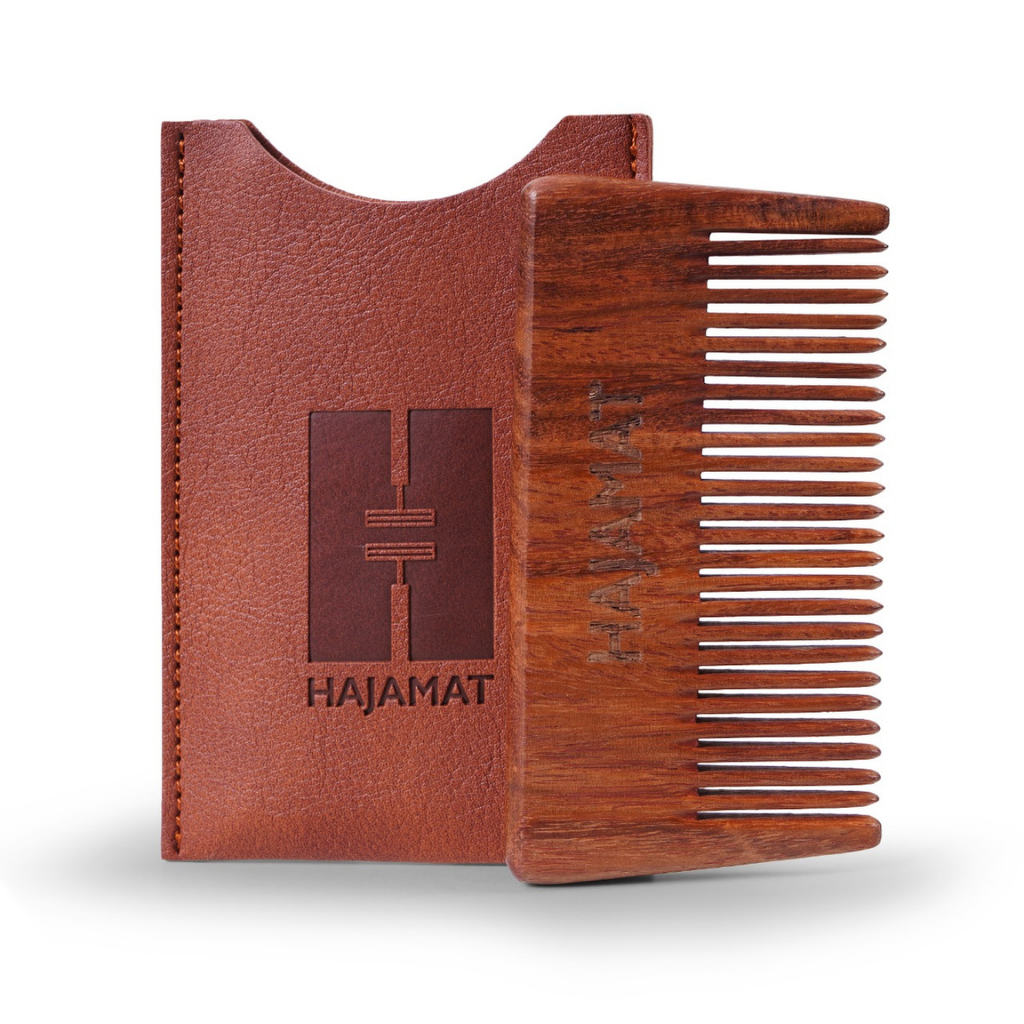 Hajamat wooden beard comb stimulates the skin while shaping your beard; its solid fine Sheesham wood avoids unmanageable beard frizz caused by static electricity from traditional plastic and steel combs. The comb works on all kinds of beard and moustache.