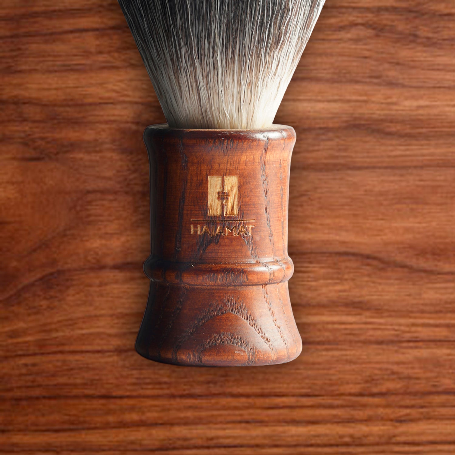 A high quality and professional Wooden Shaving Brush by Hajamat is perfect for everyday male grooming. The high quality naturally stained Sheesham handle and soft synthetic fibre bristles brush handcrafted by our master artisan blends traditional design and modern lifestyle.