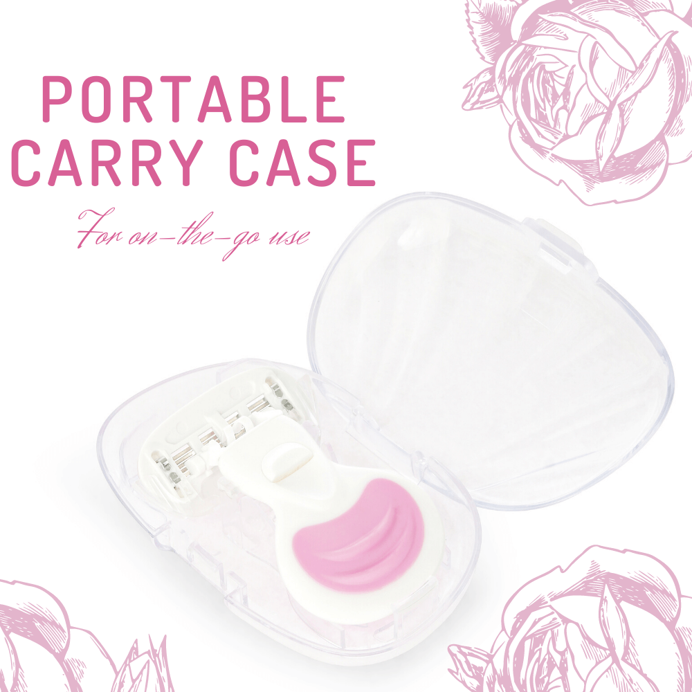 The razor comes elegantly packed in a travel-friendly case which easily fits into your travel bag or purse. The case has holes in the bottom to prevent water from accumulating, so there's never any build-up from water and moisture strip residue.